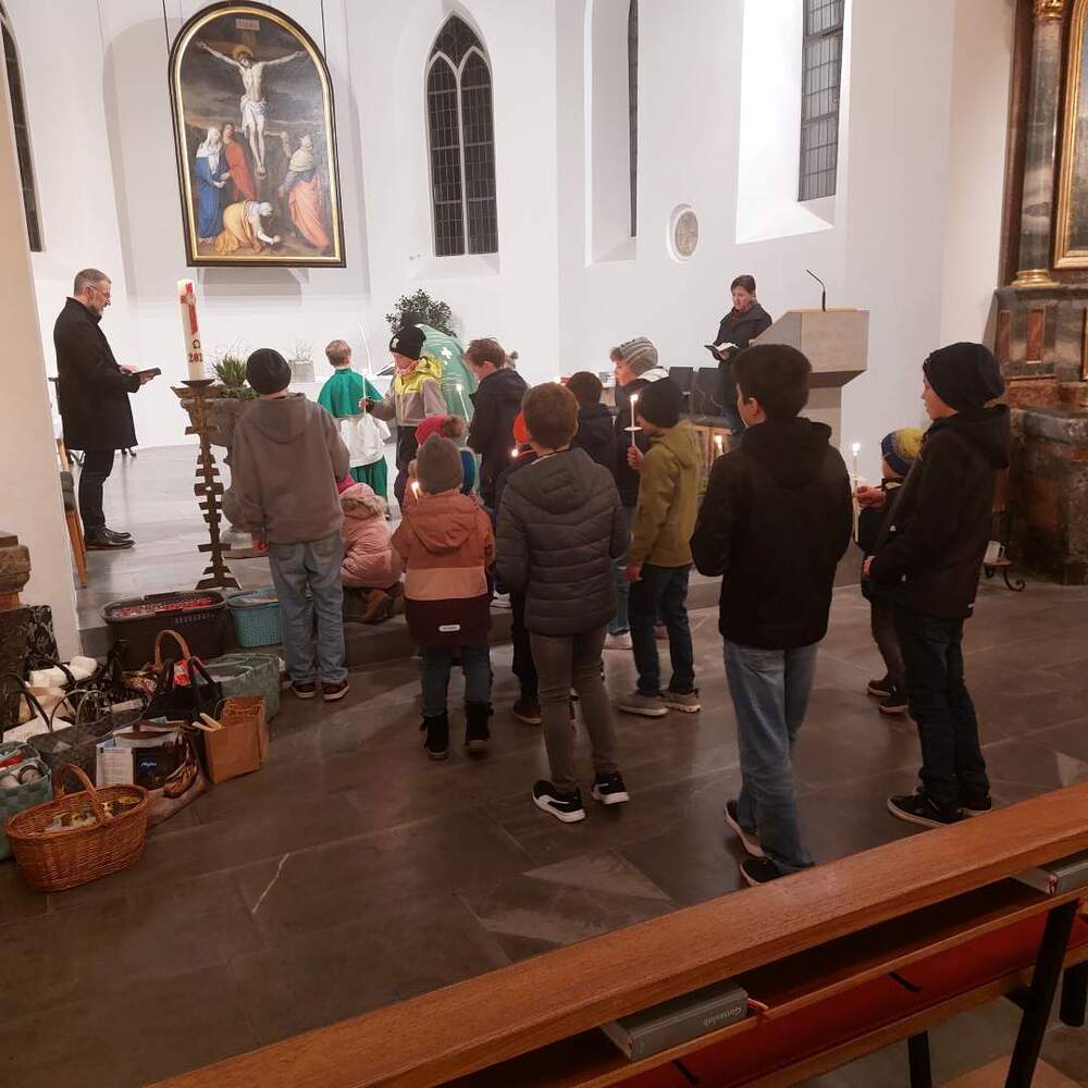 Die Kinder und Jugendlichen zogen gemeinsam mit Pfarrer Hubert in die Kirche ein, wo die mitgebrachten Kerzen gesegnet wurden. Traditionell wurde nach dem Gottesdienst der Blasiussegen gespendet.